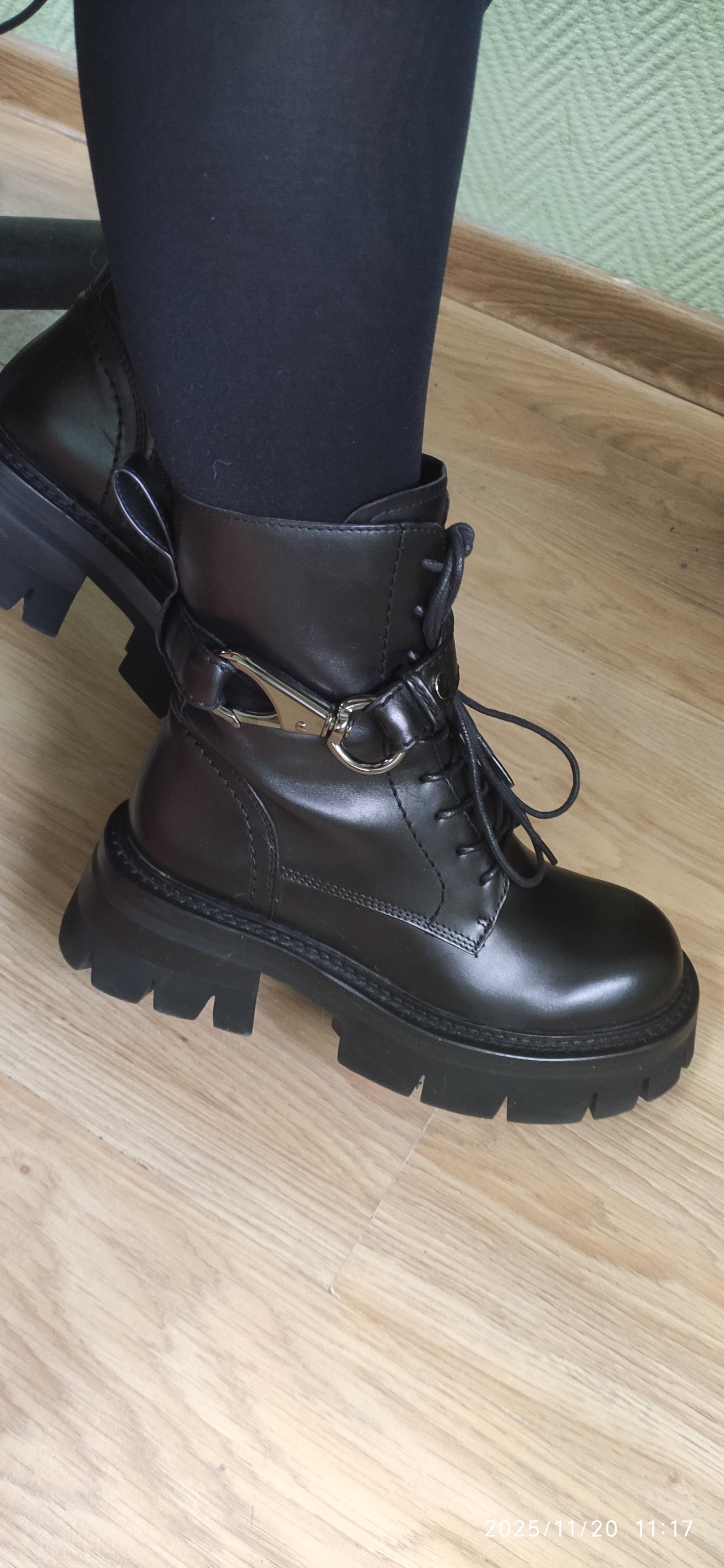 Ботиночки супер!!! Качественная кожа, внутри натуральный мех. На ноге смотрятся очень элегантно, хотя на фото они выглядят грубовато. Очень удобные в носке. Спасибо за очень удобную обувь.