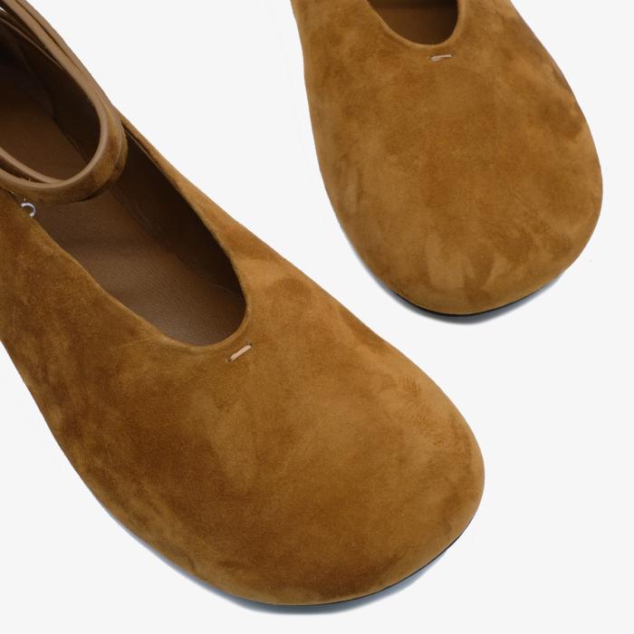 Высота каблука составляет 1 см. Подошва изготовлена из полимера (ТЭП). Внутренняя отделка и стелька выполнены из натуральной кожи. Верх балеток также выполнен из высококачественной натуральной замши.