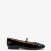 Высота каблука составляет всего 1 см. Подошва выполнена из полимера (ТЭП). Внутреннее покрытие и стелька (эргономичная) изготовлены из натуральной кожи. Верх балеток выполнен из натуральной лакированной кожи.