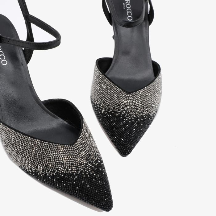 Босоножки 10691 черного цвета изготовлены из натуральной кожи, что делает их идеальным выбором для стильных женщин. Устойчивый металлический каблук и острый закрытый мыс не только добавляют изысканности, но и обеспечивают комфорт при носке. Застежка на тонкий ремешок с пряжкой позволяет легко регулировать посадку, а мыс, оформленный стразами, добавляет нотку блеска.