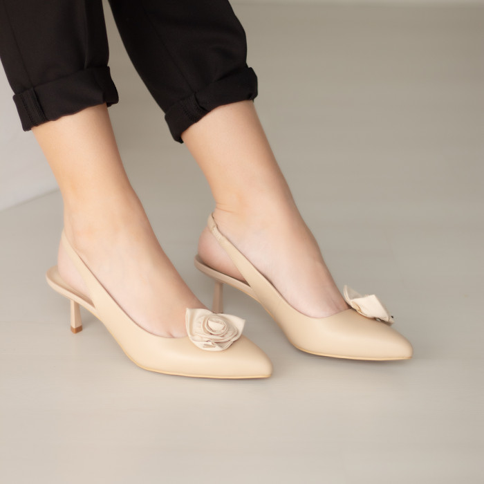 Босоножки 9149, выполненные из натуральной кожи в бежевом цвете, - стильный и элегантный выбор для летнего сезона. Особенностью этих босоножек является устойчивый каблук, острый мыс и каблук-рюмочка, которые обеспечивают комфорт и уверенность при ходьбе. Декоративный элемент в виде цветка на носке добавляет женственности и изысканности. Эластичная вставка на ремешке позволяет легко и удобно регулировать размер.
