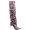 Ботфорты имеют следующие характеристики: высота каблука-шпильки составляет 10,5 см, подошва изготовлена из полимера (ТЭП) и непористой резины, внутренняя часть выполнена из ворсина, а верх изготовлен из натуральной замши.