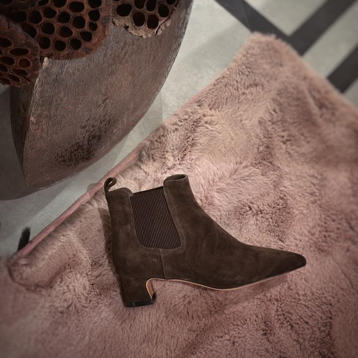 Ботильоны 10073, выполненные из натуральной замши в коричневом цвете, - элегантная женская обувь. Их ключевая особенность заключается в устойчивом каблуке (каблук обтянут натуральной замшей), остром мысе, отсутствии молнии и наличии эластичных вставок. Эти особенности обеспечивают комфортную посадку на ноге и легкость при надевании.