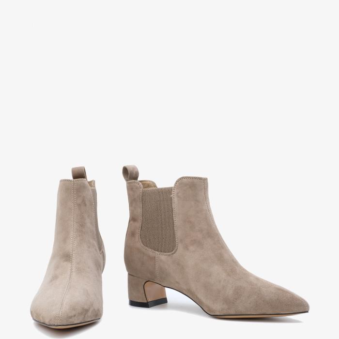 Ботильоны 10074, выполненные из натуральной замши в серо-бежевом цвете, - элегантная женская обувь. Их ключевая особенность заключается в устойчивом каблуке (каблук обтянут натуральной замшей), остром мысе, отсутствии молнии и наличии эластичных вставок. Эти особенности обеспечивают комфортную посадку на ноге и легкость при надевании.