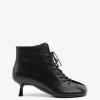 Ботильоны 11153 черного цвета выполнены из высококачественной натуральной кожи. Ключевая особенность этих ботильонов – устойчивый каблук, квадратный мыс и удобная шнуровка на подъеме. Такая комбинация обеспечивает не только стильный внешний вид, но и надежную фиксацию стопы. Молния с внутренней стороны облегчает процесс обувания и снятия.