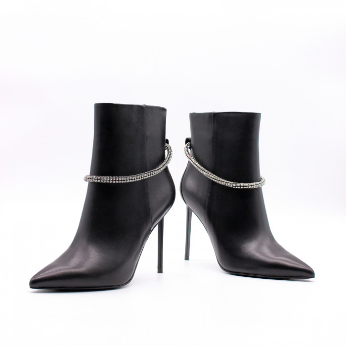 Ботильоны BAROCCO 1804-601-1R изготовлены из качественной натуральной кожи черного цвета. Острый мыс, элегантный каблук-шпилька и съёмный браслет со стразами придают модели особую привлекательность.
