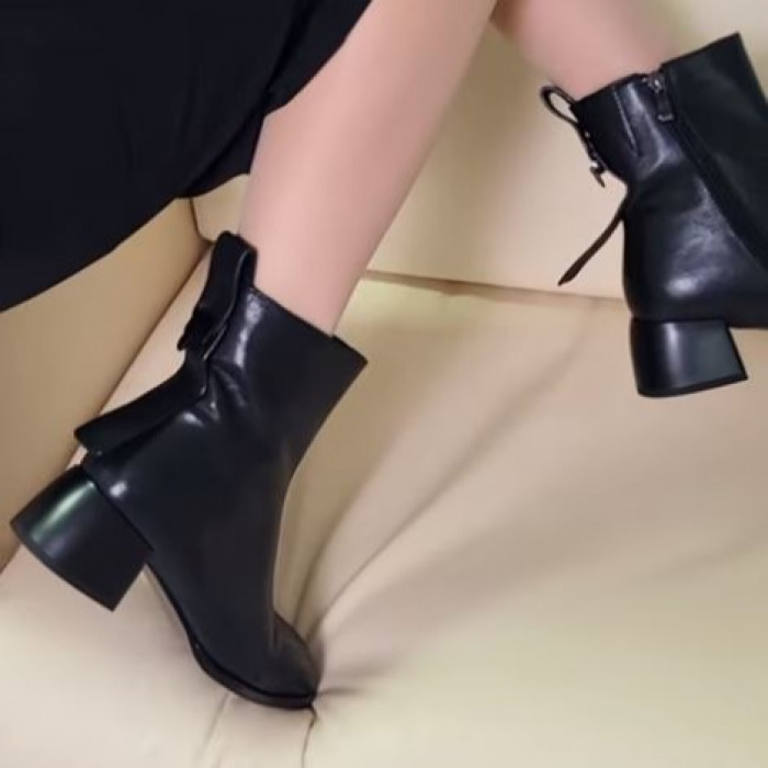 Они обладают квадратным мысом, широким устойчивым каблуком и застежкой на молнию с внутренней стороны. Высота каблука составляет 5 см, подошва изготовлена из непористой резины, внутренняя отделка выполнена из ворсина, а верх изготовлен из качественной натуральной кожи.