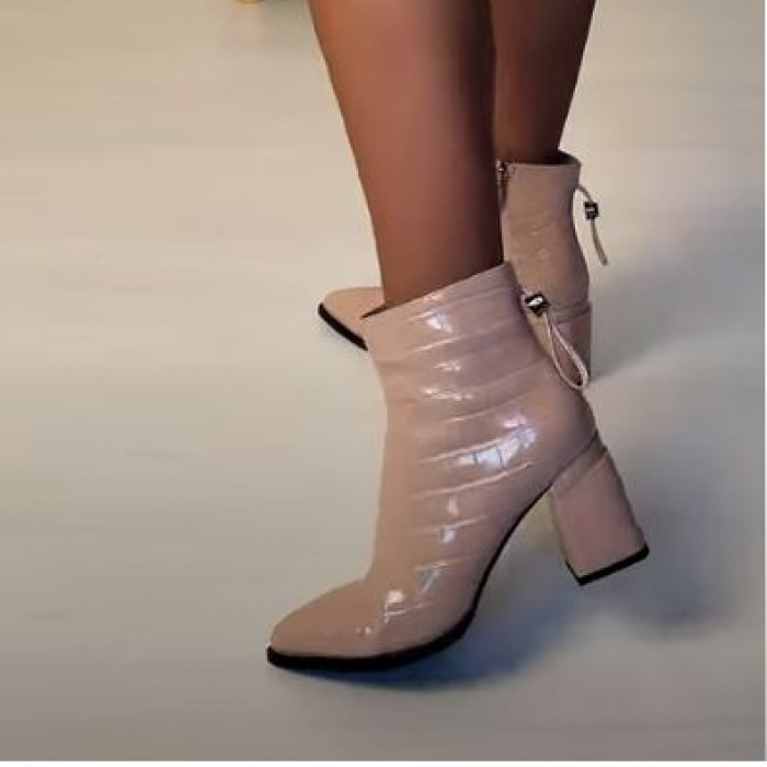 Ботильоны 8896 из лакированной кожи бежевого цвета — стильное дополнение к Вашей коллекции обуви. Эти ботильоны имеют устойчивый каблук и острый носок, что обеспечивает комфорт и элегантность.