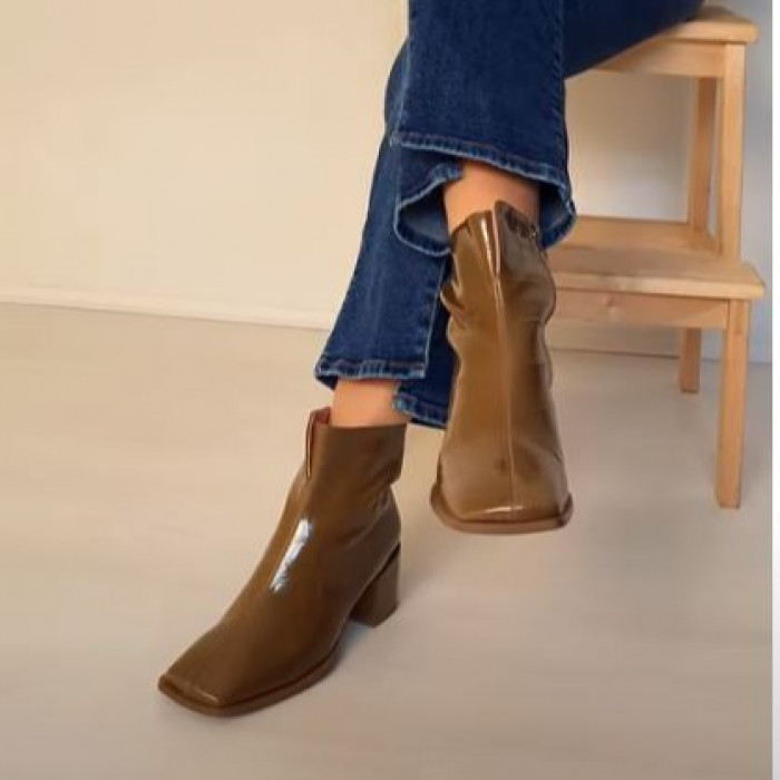 Ботильоны 8929 из высококачественной лакированной кожи коричневого цвета станут незаменимым дополнением Вашей коллекции обуви. Их ключевые особенности включают массивный каблук, квадратный носок, застежку-молнию и стильный дизайн с принтом рептилий.