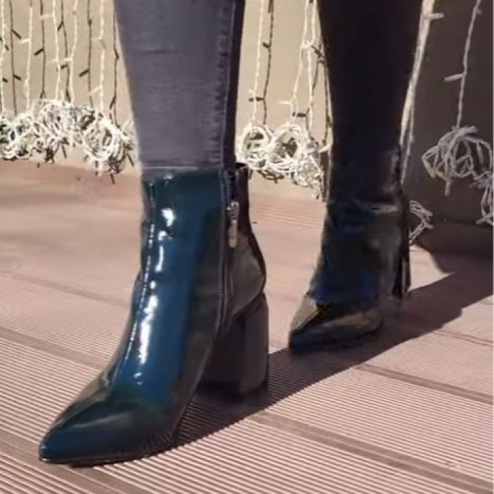 Ботильоны 8984, выполненные из натуральной лакированной кожи в зеленом цвете, подчеркнут Вашу индивидуальность. Устойчивый каблук, острый мыс и молния с внутренней стороны делают эти ботильоны модными и удобными для повседневной носки.