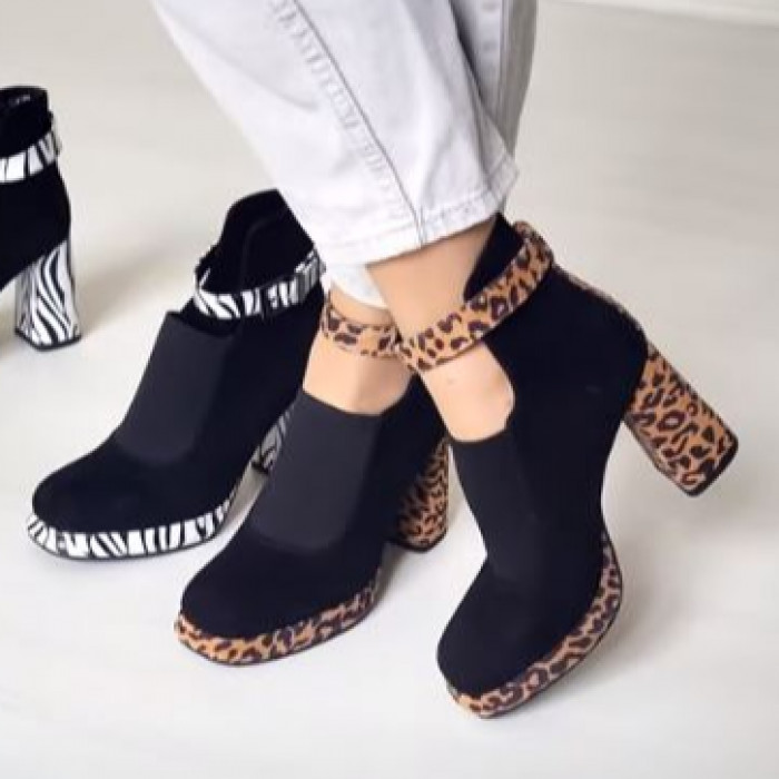 Ботильоны 9112, выполненные из натуральной замши в черном цвете со вставкми из замши с леопардовым принтом, представляют собой стильную и оригинальную обувь. Ключевая особенность этих ботильонов - устойчивый широкий каблук, эластичная вставка на подъеме, закругленный мыс, застежка на ремешок с пряжкой, а также декоративные элементы: каблук обтянут замшей в леопардовом принте и замшевые вставки в том же стиле. Это придает обуви не только стильный вид, но и обеспечивает комфорт при ходьбе.