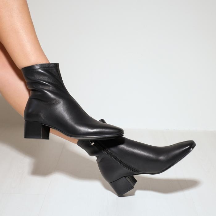 Ботильоны 9620 черного цвета выполнены из натуральной кожи, что обеспечивает их долговечность и элегантный внешний вид. Ботильоны оснащены широким устойчивым каблуком (каблук обтянут натуральной кожей), который обеспечивает комфорт при ношении в течение всего дня. Прямоугольный мыс и минималистичный дизайн делают их универсальным выбором для любого гардероба.