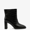 Ботильоны 9662 выполнены из высококачественной натуральной кожи черного цвета, что делает их универсальным элементом вашего гардероба. Ключевая особенность данной модели — устойчивый каблук (каблук обтянут натуральной кожей) и квадратный мыс, которые обеспечивают комфорт и стабильность при ходьбе. Отсутствие молнии делает обувь более элегантной и облегчает процесс надевания, а фактура под "рептилию" добавляет изюминку и стильный акцент.