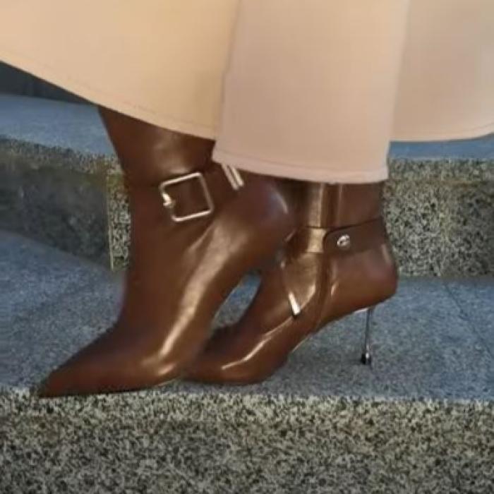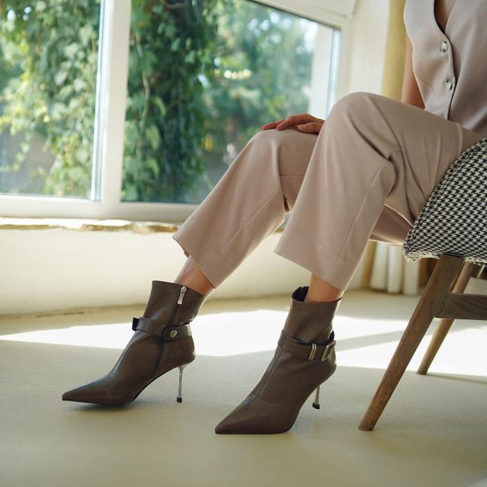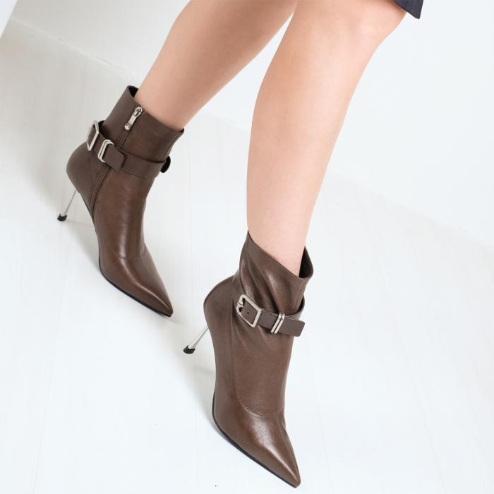 Ботильоны 9738, выполненные из натуральной кожи коричневого цвета, станут идеальным дополнением к Вашему гардеробу. Устойчивый металлический каблук и острый мыс обеспечивают комфорт при носке. Молния с внутренней стороны облегчает процесс надевания, а съемный декор в виде ремешка с пряжкой позволяет варьировать стиль.