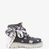 Синие ботинки 10078, выполненные из высококачественного текстиля, идеально подойдут для создания модных образов. Широкий устойчивый каблук и закругленный мыс обеспечивают комфорт и поддержку в течение всего дня, а шнуровка на подъеме позволяет легко регулировать посадку. Фактура обуви с эффектом потертости, что придает обуви стильный и современный вид. Съемный декор в виде атласного платка позволяет менять стиль ботинок в зависимости от Вашего настроения.