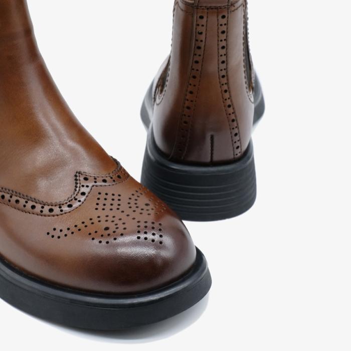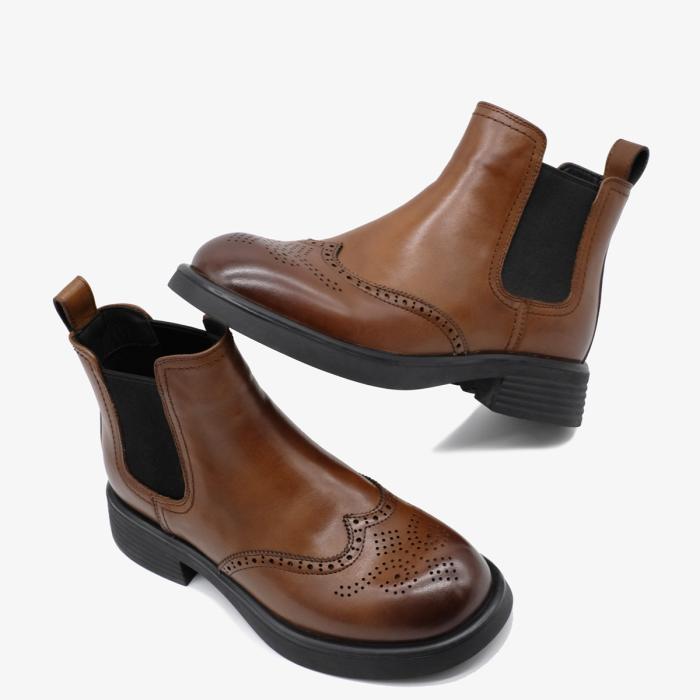 Коричневые ботинки-челси 10737 из натуральной кожи — это стильная и элегантная обувь, которая станет идеальным дополнением к Вашему гардеробу. Ботинки выделяются широким каблуком и закругленным мысом, что обеспечивает комфорт и стабильность при ходьбе. Эластичные вставки по бокам делают обувь легкой в надевании и обеспечивают отличную посадку на ноге. Рисунок в виде перфорации на мысе добавляет оригинальности и шарма.