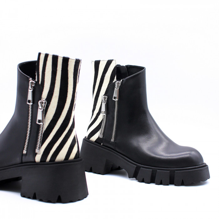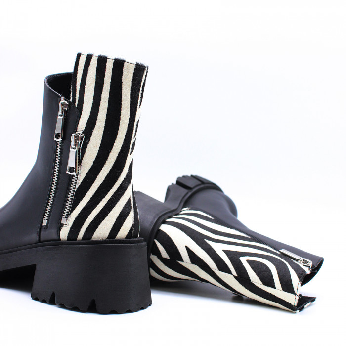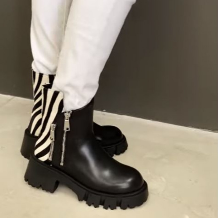 Их ключевая особенность - декоративные молнии и вставки с принтом "зебра". Застёжка на молнию с внутренней стороны обеспечивает удобство надевания.