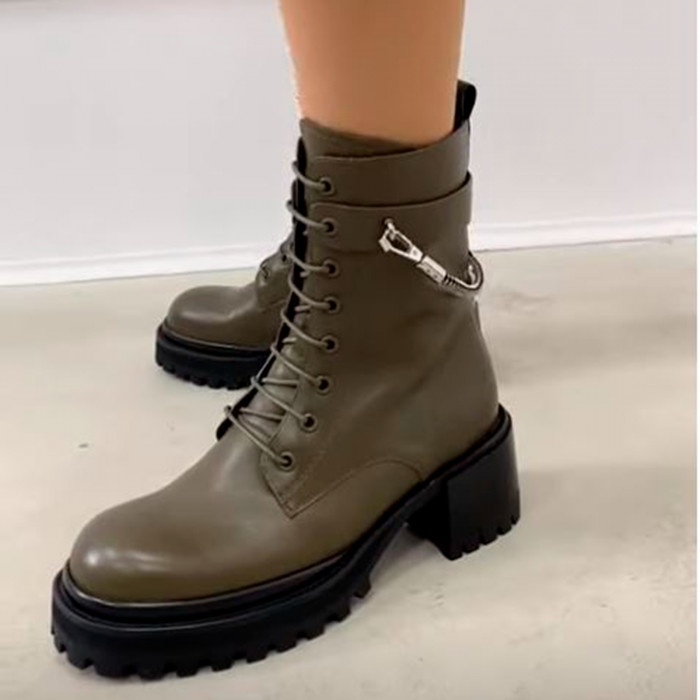 Ботинки BASCONI 28806B-B из натуральной кожи цвета хаки - идеальный выбор для стильных женщин. Их ключевая особенность: удобная шнуровка на подъёме, застёжка на молнию с внутренней стороны, съёмный металлический декор в виде молнии.