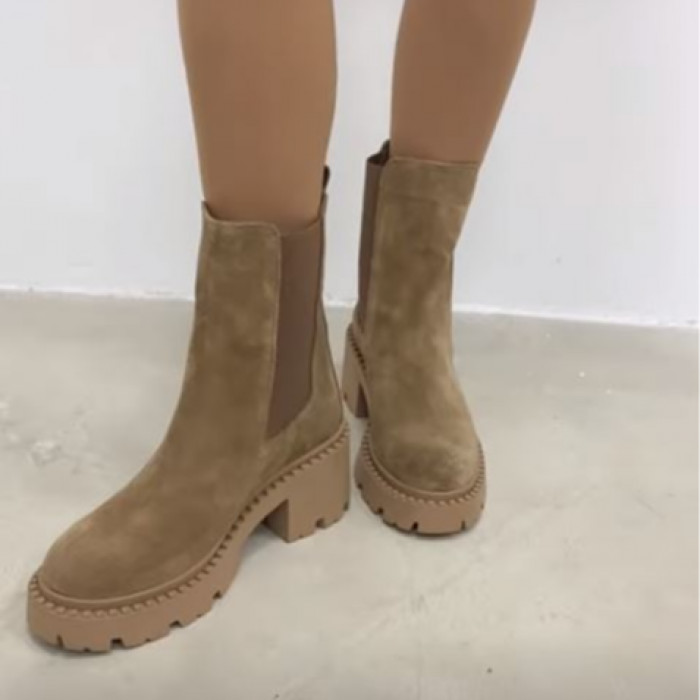Ботинки DALMAX 23208-422-S.TOBACC рыжий мех выполены из качественной натуральной замши рыжего цвета. Их ключевые особенности - закругленный мыс, эластичные вставки, отсутствие застёжки, широкий устойчивый каблук. Высота каблука из полимера (ТЭП) - 7,5 см, внутренняя отделка выполнена из натурального меха.