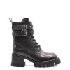 Их ключевая особенность заключается в застёжке на молнию с внутренней стороны и шнуровке на подъёме, обеспечивая удобство надевания. Оригинальность модели придаёт металлический декор в пяточной части и тонкие ремни с пряжками. Высота каблука составляет 7,5 см, а материал подошвы - полимер (ТЭП). Внутри ботинок используется натуральный мех, а верх изготовлен из качественной натуральной кожи.