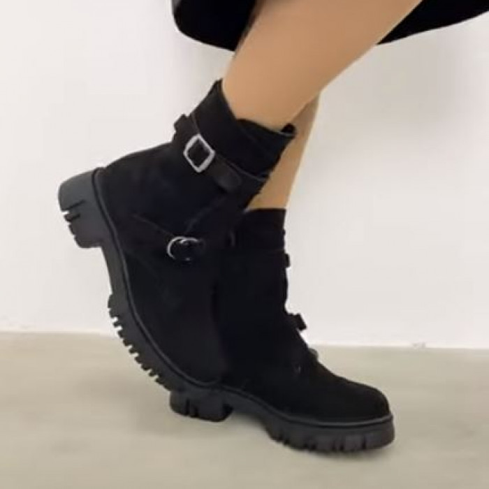 Ботинки BAROCCO 6743-254 черный мех из натуральной замши черного цвета - это стильный и практичный выбор для Вашего зимнего гардероба. Ключевыми особенностями являются широкие ремни с пряжками на подъёме и застежка на молнию с внутренней стороны, облегчающая надевание и снятие обуви.