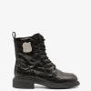 Ботинки 9623 изготовлены из натуральной кожи в черном цвете. Эти элегантные ботинки отличаются закругленным мысом, застёжкой на молнию с внутренней стороны, широким устойчивым каблуком, шнуровкой, металлический декором и модель с эффектом мятой кожи, что придает им стильный и модный вид.