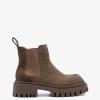 Ботинки 9675 коричневого цвета выполнены из натуральной кожи (нубук). Ботинки оснащены устойчивым каблуком и квадратным мысом, что обеспечивает не только современный внешний вид, но и комфорт при носке. Эластичные вставки с обеих сторон делают обувь легкой в использовании, позволяя быстро надевать и снимать её без молний.