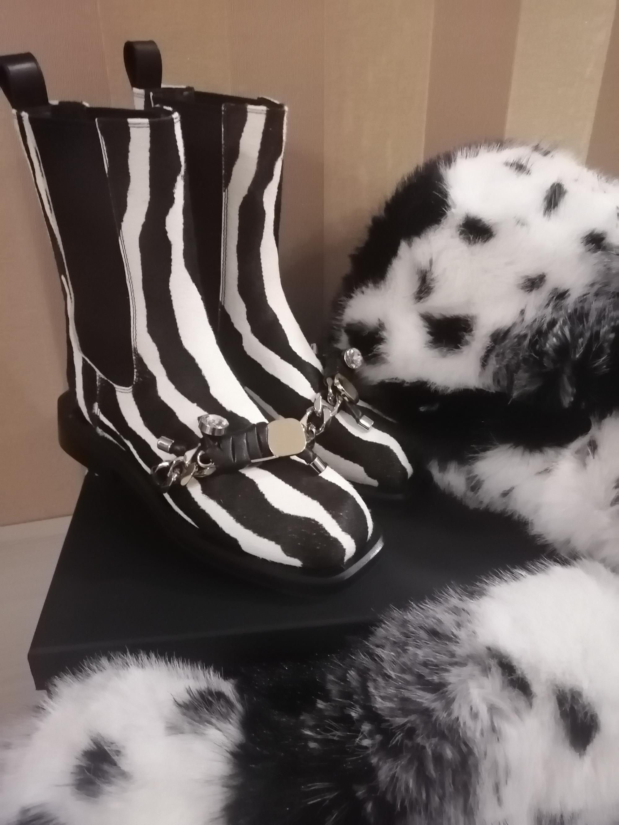 Ботинки 9817 выполнены из натуральной кожи в анимастическом принте (зебра). Широкий каблук и закругленный мыс обеспечивают комфорт при носке, а эластичные вставки по бокам позволяют легко надевать и снимать обувь. Анималистический принт и декор в виде металлической цепи придают ботинкам уникальный и модный вид.