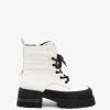 Ботинки 9995 белого цвета выполнены из натуральной кожи, что придает им современный и элегантный вид. Широкий каблук и закругленный прорезиненный мыс обеспечивают комфорт и стабильность при ходьбе, а молния с внутренней стороны и шнуровка на подъеме делают обувь удобной и легкой в использовании. Тиснение добавляет нотку изысканности.