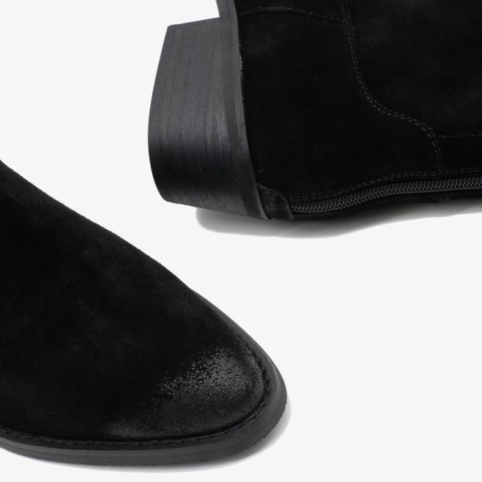 Казаки 10779 черного цвета изготовлены из высококачественной натуральной замши, что делает их отличным выбором для любителей элегантной обуви. Устойчивый каблук и острый мыс придают этим казакам изысканный вид, а молния сзади обеспечивает легкость в обувании.