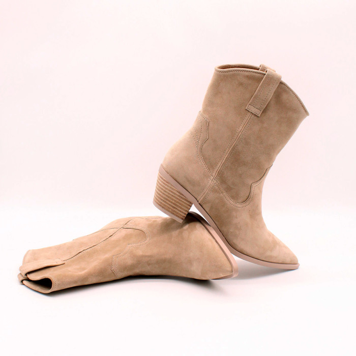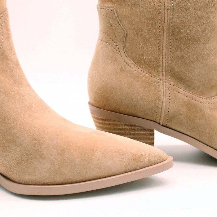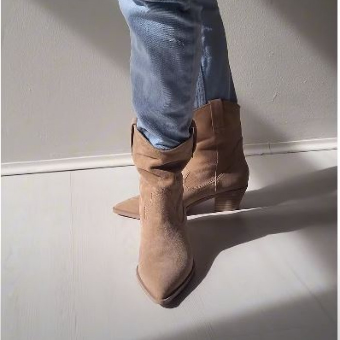 Казаки 9068 из натуральной замши в бежевом цвете - стильная и удобная обувь. Основное преимущество этих казаков - устойчивый каблук, острый мыс и отсутствие застежки, что обеспечивает легкость в ношении и комфорт при ходьбе.