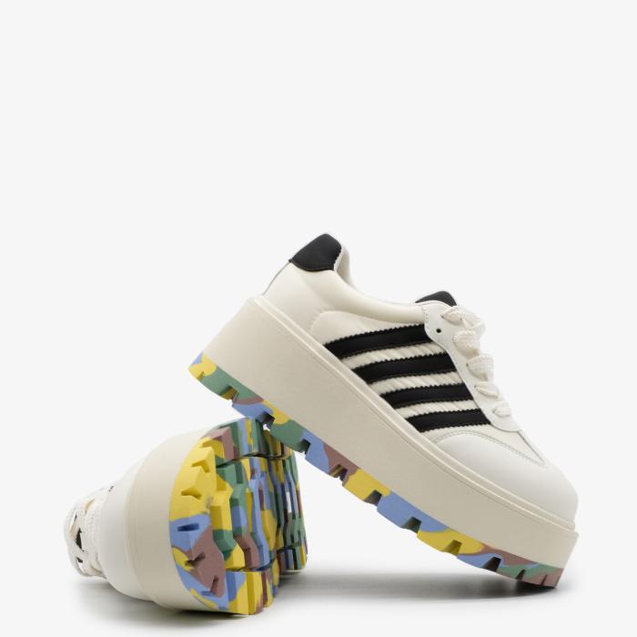 Кеды 10153 молочного цвета выполнены из натуральной кожи и текстиля, что обеспечивает высокое качество и стильный внешний вид. Комфортная высота платформы и закругленный мыс делают эти кеды идеальными для длительной носки, а яркая акцентная подошва добавляет оригинальности и привлекает внимание.