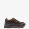 Высота подошвы составляет 4 см. Подошва выполнена из полимерного материала (ТЭП). Внутренние элементы и стелька также изготовлены из натуральной кожи. Верхняя часть кроссовок из натуральной замши и натуральной кожи.