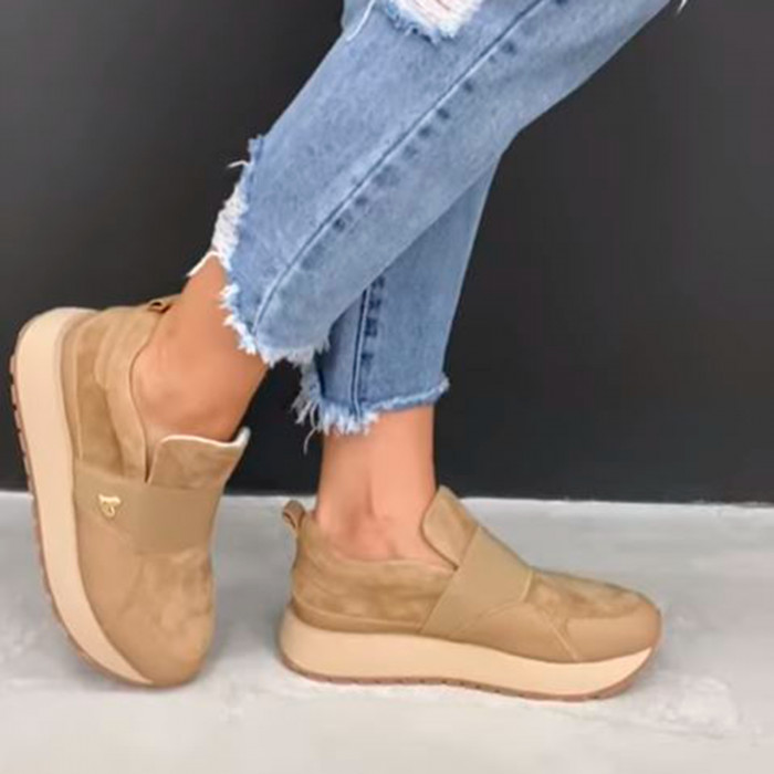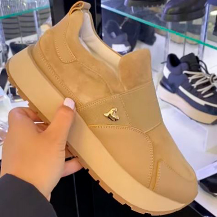 Модель характеризует комфортная высота подошвы. Шнуровку заменяет удобная эластичная вставка с металлическим декором.