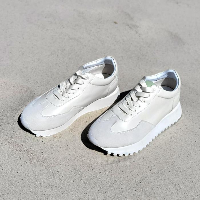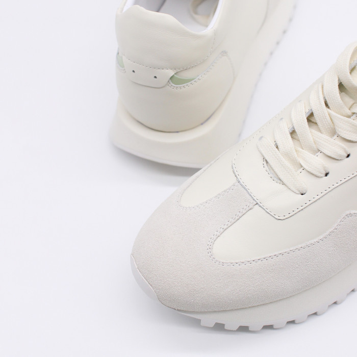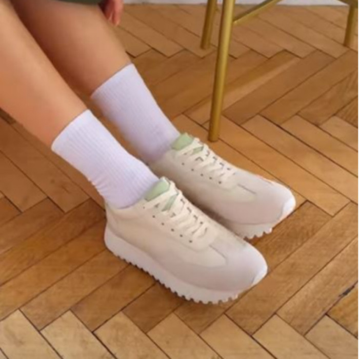 Кроссовки 8933 из натуральной кожи в сочетании с натуральной замшей стильного молочного цвета станут незаменимым дополнением Вашей коллекции обуви. У этих кроссовок есть ключевое преимущество: простая в использовании система шнуровки, обеспечивающая надежную посадку и комфортное ношение.