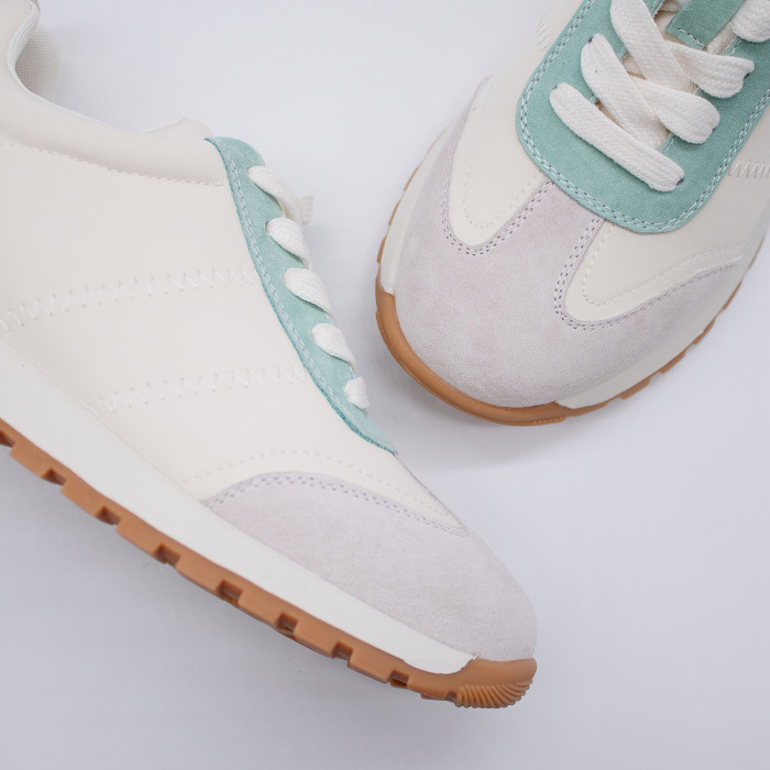 Кроссовки 9010 изготовлены из натуральной замши серого цвета в сочетании с текстилем бежевого цвета. Сочетание натуральной замши и текстиля в материале верха придает этим кроссовкам универсальный и стильный вид. Ключевой особенностью этих кроссовок является удобная система шнуровки, обеспечивающая плотную посадку и удобство ношения.