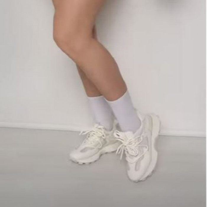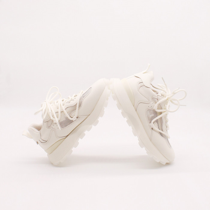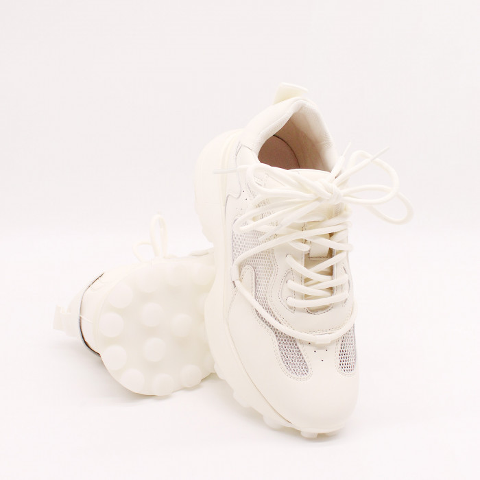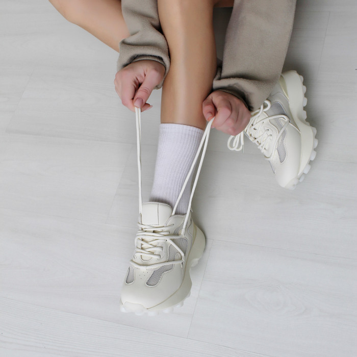 Кроссовки 9043 изготовлены из качественной натуральной кожи молочного цвета.