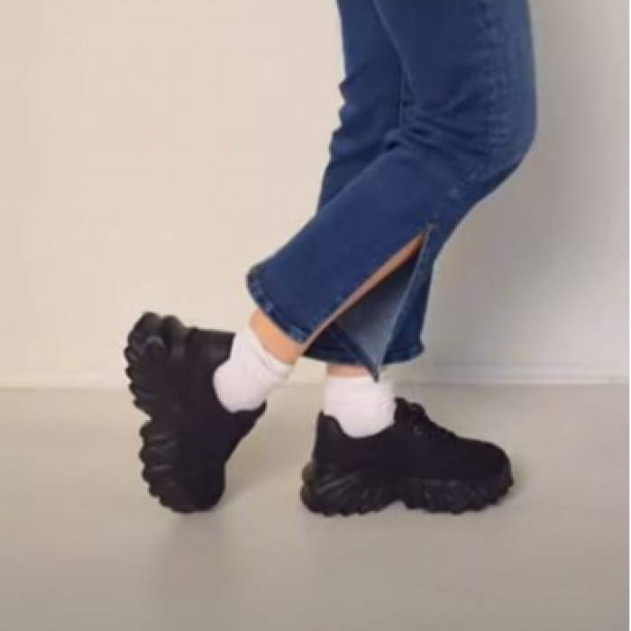 Стильные черные текстильные кроссовки 9058, созданные с учетом комфорта и стиля. Эти кроссовки с удобной шнуровкой и фигурной подошвой уникального дизайна сочетают в себе функциональность и модную привлекательность.