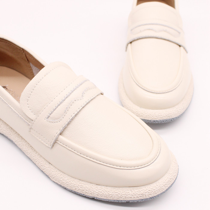 Лоферы 8997 выполнены из натуральной кожи молочного цвета. Имеют ключевую особенность - закругленный носок, сочетающий в себе элегантность и комфорт. Широкий устойчивый каблук обеспечивает устойчивый шаг и делает их идеальными для повседневного ношения. Эти лоферы выполнены в стиле пенни-лоферов, которые добавят Вашему образу нотку изысканности.