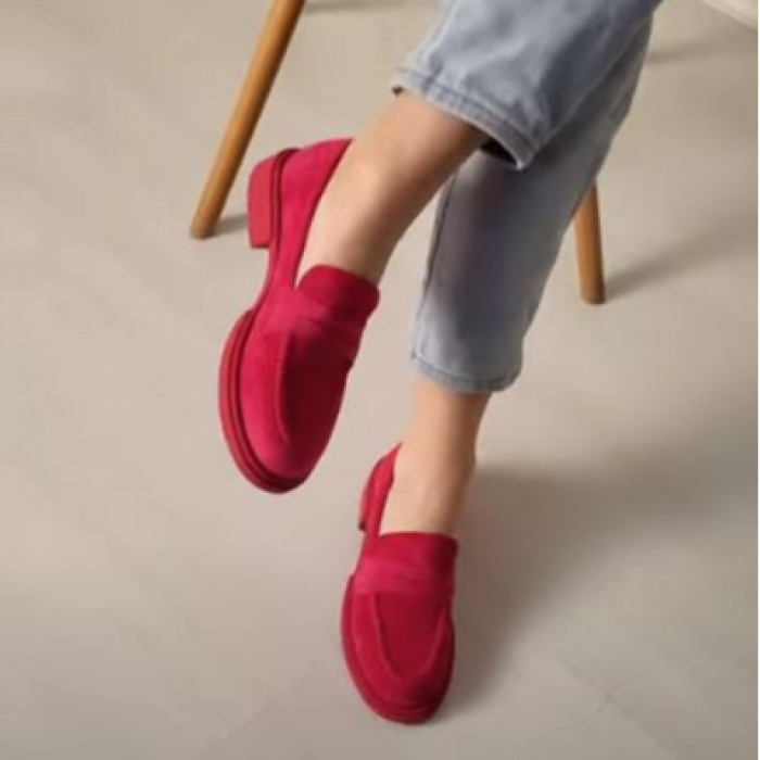 Лоферы 9035 изготовлены из натуральной замши розового цвета. Главной особенностью этих лоферов является их комфортная высота каблука и подошвы, что обеспечивает устойчивость и удобство при длительной ходьбе. Подошва выполнена из полиуретана, а стелька из натуральной кожи, что обеспечивает комфорт и долговечность обуви. Верх лоферов выполнен из натуральной замши, что добавляет изделию шарма и элегантности.