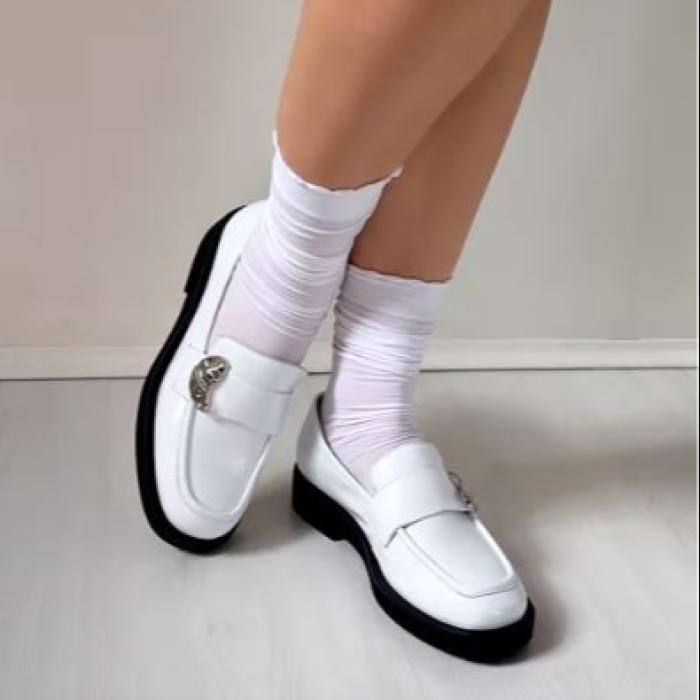 Эти лоферы 9087 отлично подойдут для офисного стиля, повседневных прогулок или встреч с друзьями. Их удобная посадка и качественные материалы обеспечат комфорт на протяжении всего дня. Эта обувь прекрасно сочетается с брюками классического кроя, юбками различной длины и стилями платьев. Белый цвет добавит свежести и яркости Вашему образу, подчеркивая Вашу индивидуальность и стиль.
