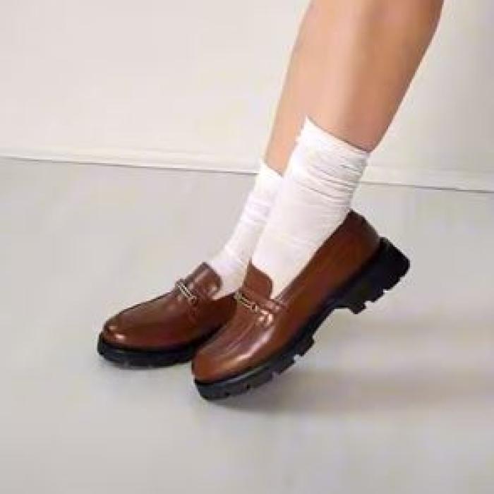 Лоферы 9091, выполенные из натуральной кожи коричневого цвета, - стильная и удобная обувь для повседневного использования. Основное преимущество этих лоферов заключается в их устойчивом широком каблуке, который обеспечивает комфорт и стабильность при ходьбе. Кроме того, закругленный мыс и металлический декор на подъеме делают эту обувь модной и элегантной.