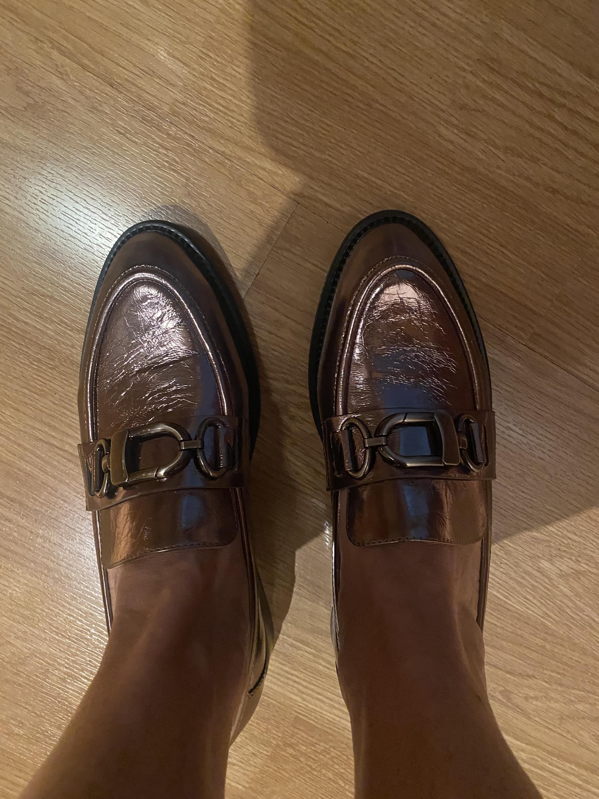 Лоферы 9860 бронзового цвета, выполненные из натуральной лакированной кожи, — это стильный выбор для современных женщин, стремящихся к элегантности и комфорту. Эти лоферы оснащены широким каблуком и закругленным мысом, что обеспечивает отличную поддержку и удобство при носке. Металлический декор в виде пряжки добавляет изысканности и делает обувь более привлекательной.
