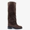 Сапоги 10982 черного цвета выполнены из натуральной кожи, что придает им роскошный и элегантный вид. Ключевая особенность этих сапог — широкий каблук и закругленный мыс, что обеспечивает комфорт и стабильность при ходьбе. Минималистичный дизайн делает их универсальными для любого гардероба.