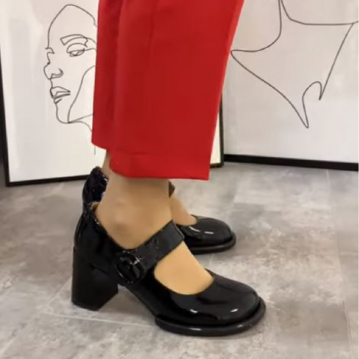Туфли 8875 на каблуке выполнены из черной натуральной лакированной кожи, которые идеально дополнят Ваш гардероб. Ключевой особенностью этой обуви является стиль "мери джейн", который придает образу изысканность и женственность, а так же широкий устойчивый каблук и закругленный носок, обеспечивающие стиль и комфорт.
