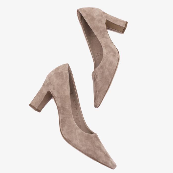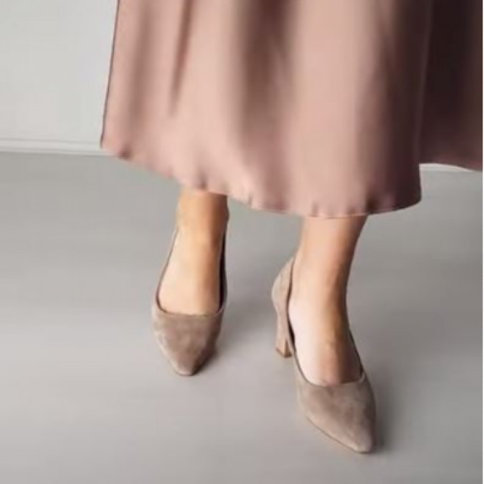 Туфли 9121 выполнены из натуральной замши в бежевом цвете - стильная и элегантная обувь для любого случая. Ключевая особенность этих туфель - устойчивый каблук, острый мыс и классический дизайн туфель лодочек, что придает образу изысканности и женственности.