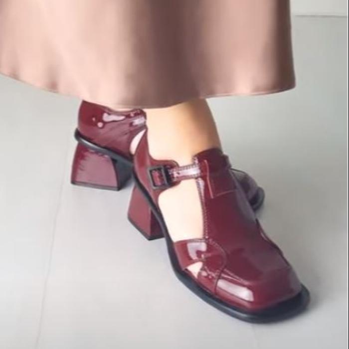 Туфли 9449 из натуральной лакированной кожи бордового цвета - стильный выбор для модных женщин. Ключевая особенность этих туфель - широкий устойчивый каблук (каблук обтянут натуральной лакированной кожей), прямоугольный мыс, застежка на ремешок с пряжкой на подъеме, стиль Мэри Джейн, что придает удобство и изысканность Вашему образу.