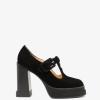 Высота каблука составляет 11,5 см. Подошва изготовлена из полимера (ТЭП). Внутренняя отделка и стелька выполнены из натуральной кожи. Верх туфель из натуральной замши.