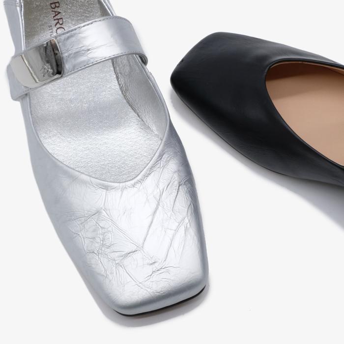 Туфли 10188 серебряного цвета выполнены из натуральной кожи с фактурой "мятой кожи", что добавляет уникальности и стиля. Широкий каблук, квадратный мыс и застежка на широкий ремешок с липучкой на подъеме делают эти туфли не только элегантными, но и удобными для длительного ношения.