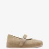 Высота подошвы составляет 3,5 см. Подошва изготовлена из полимера (ТЭП). Внутренняя отделка и стелька выполнены из натуральной кожи. Верх туфель из натуральной замши.